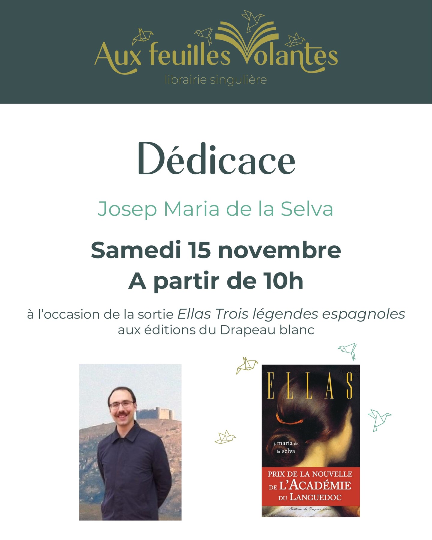 Josep Maria de la Selva dédicacera Ellas. Trois légendes espagnoles, récemment récompensé par le prix de la nouvelle Jean-Mistler de l’Académie du Languedoc, à la librairie Aux feuilles volantes de Saint-Paul-lès-Dax,…